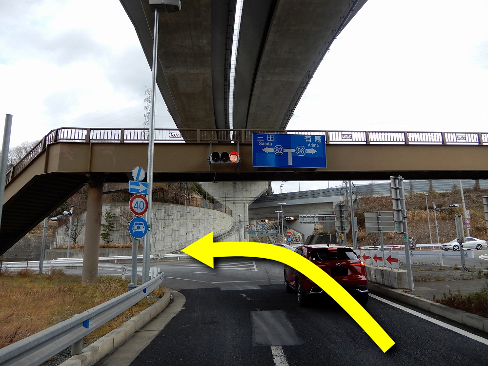 ①西宮山口南インターで降りてすぐ、信号を左折します。